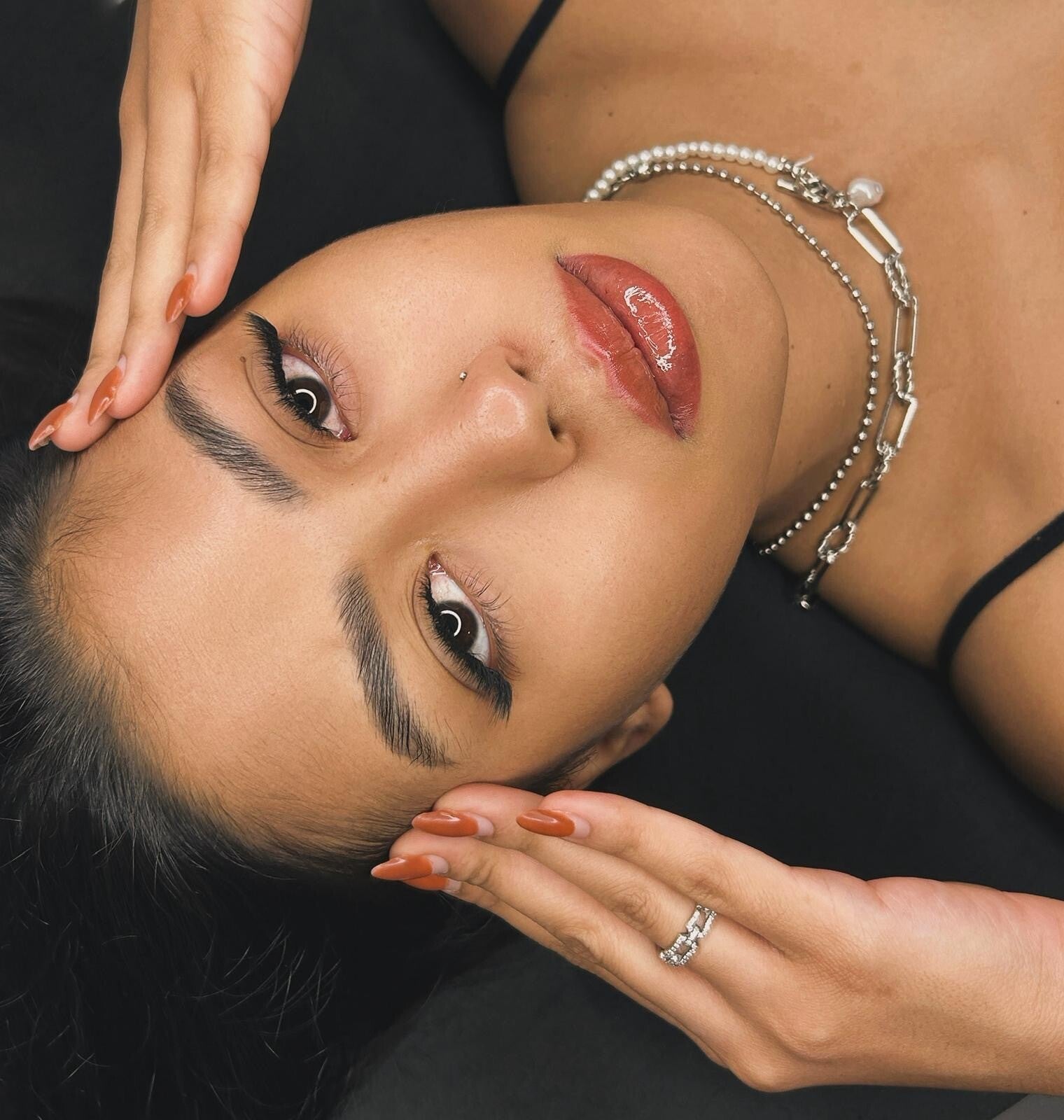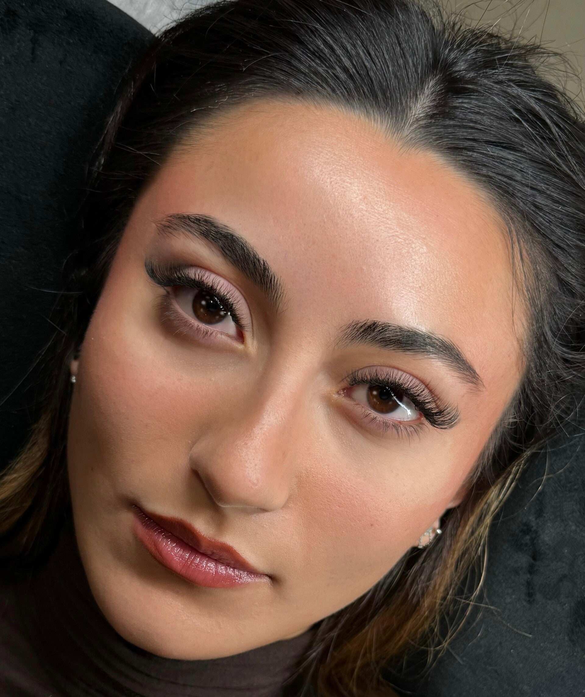 On applique des bouquets de cils 5D sur chaque cil naturel, créant un effet dense et bien rempli, sans compromettre l’élégance.